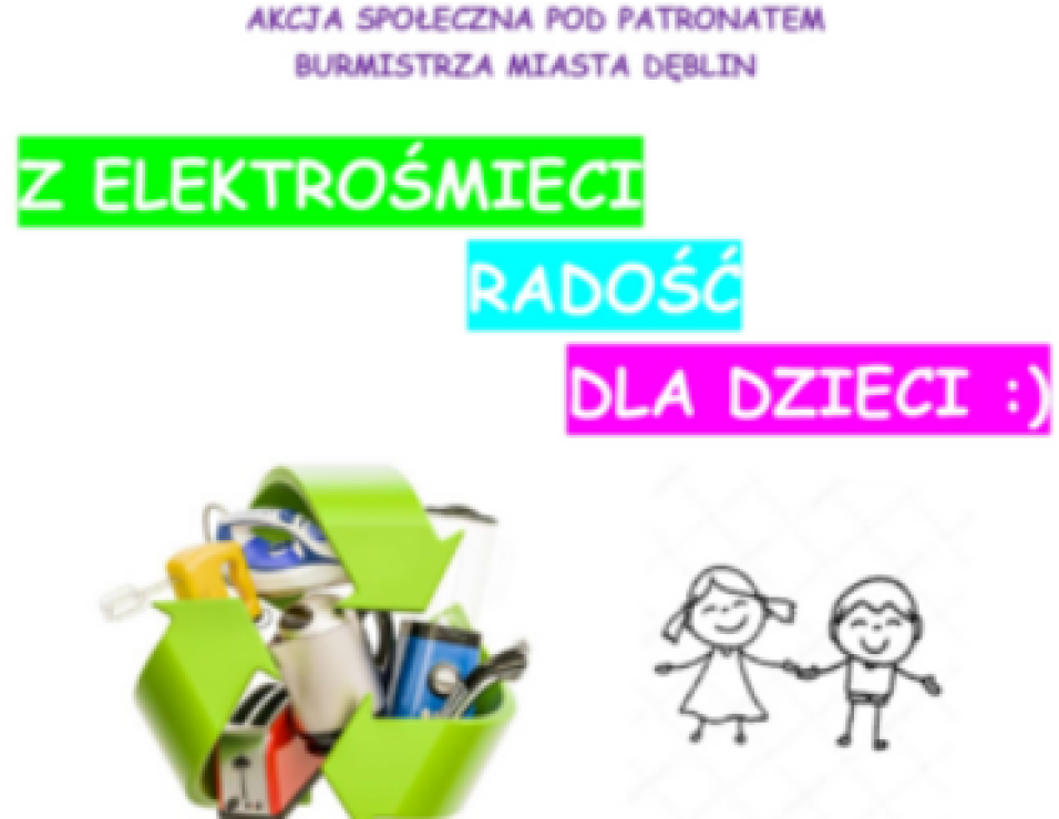 Miasto Dęblin informuje o rozpoczęciu akcji społecznej pod patronatem Burmistrza Miasta Dęblin pn. „Z elektrośmieci – radość dla dzieci!”, której celem jest zbiórka zużytego sprzętu elektrycznego i elektronicznego.