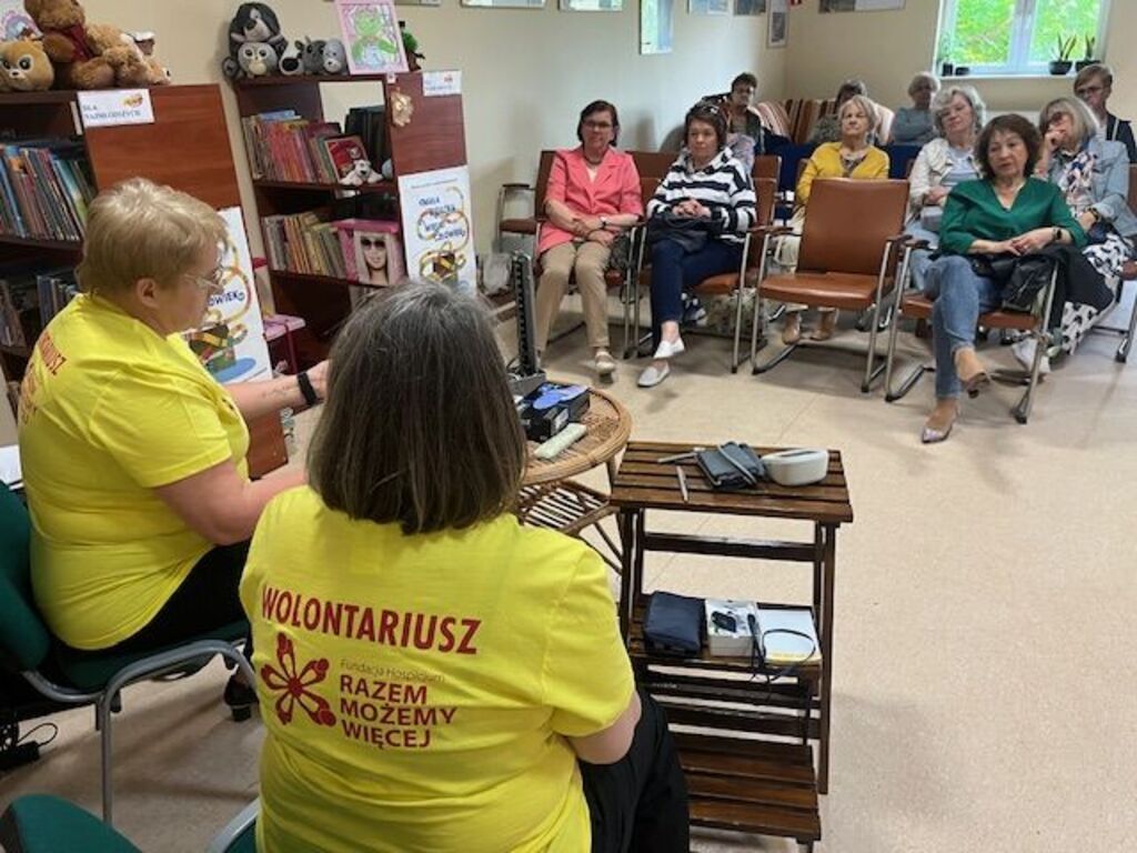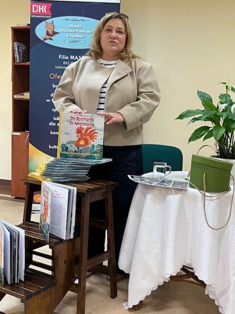 Pierwszego dnia strażacy z KP PSP w Rykach zaprezentowali Naszym Czytelnikom szybki kurs pierwszej pomocy. Kolejnego dnia , przybyła Pani Hanna Dąbrowska, która podróżuje po całym świecie, a tym razem odwiedziła portugalską wyspę Maderę. We środę pojawił się przedsiębiorca, właściciel lodziarni „Lody z Farmy” i rolnik Pan Mateusz Maruszewski, który przedstawił blaski i cienie pracy na roli. Pan Mateusz wręczył wszystkim uczestnikom smaczne truskawki. Za co serdecznie dziękujemy!!! Tego dnia pojawiły się również Panie Pielęgniarki z Hospicjum Św. Siostry Faustyny Kowalskiej w Stawach, które opowiedziały o zdrowym stylu życia. Zaś w czwartek była z nami Pani Wioletta Mikusek – Kasołka, która opowiedziała o pielęgnacji paznokci. Zwieńczeniem Akcji było spotkanie autorskie z Panią Dorotą Opolską, autorką przewodnika po Kazimierzu Dolnym „Od Spichlerza do Mięćmierza”. Wszystkim Gościom serdecznie dziękujemy za bezpłatne przybycie i cenne wiadomości.