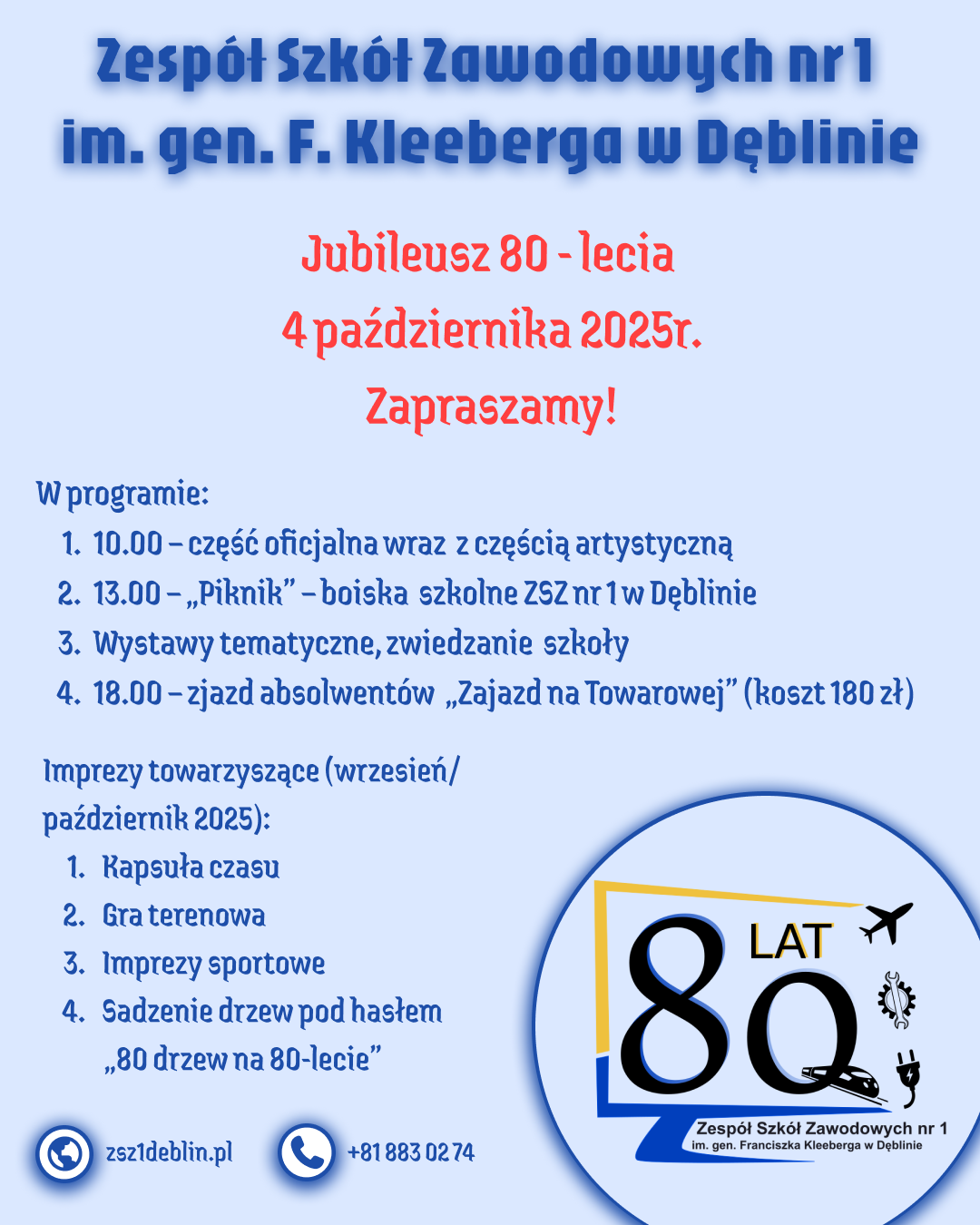 JUBILEUSZ 80-LECIA ZESPOŁU SZKÓŁ ZAWODOWYCH NR 1 IM. GEN. F. KLEEBERGA W DĘBLINIE