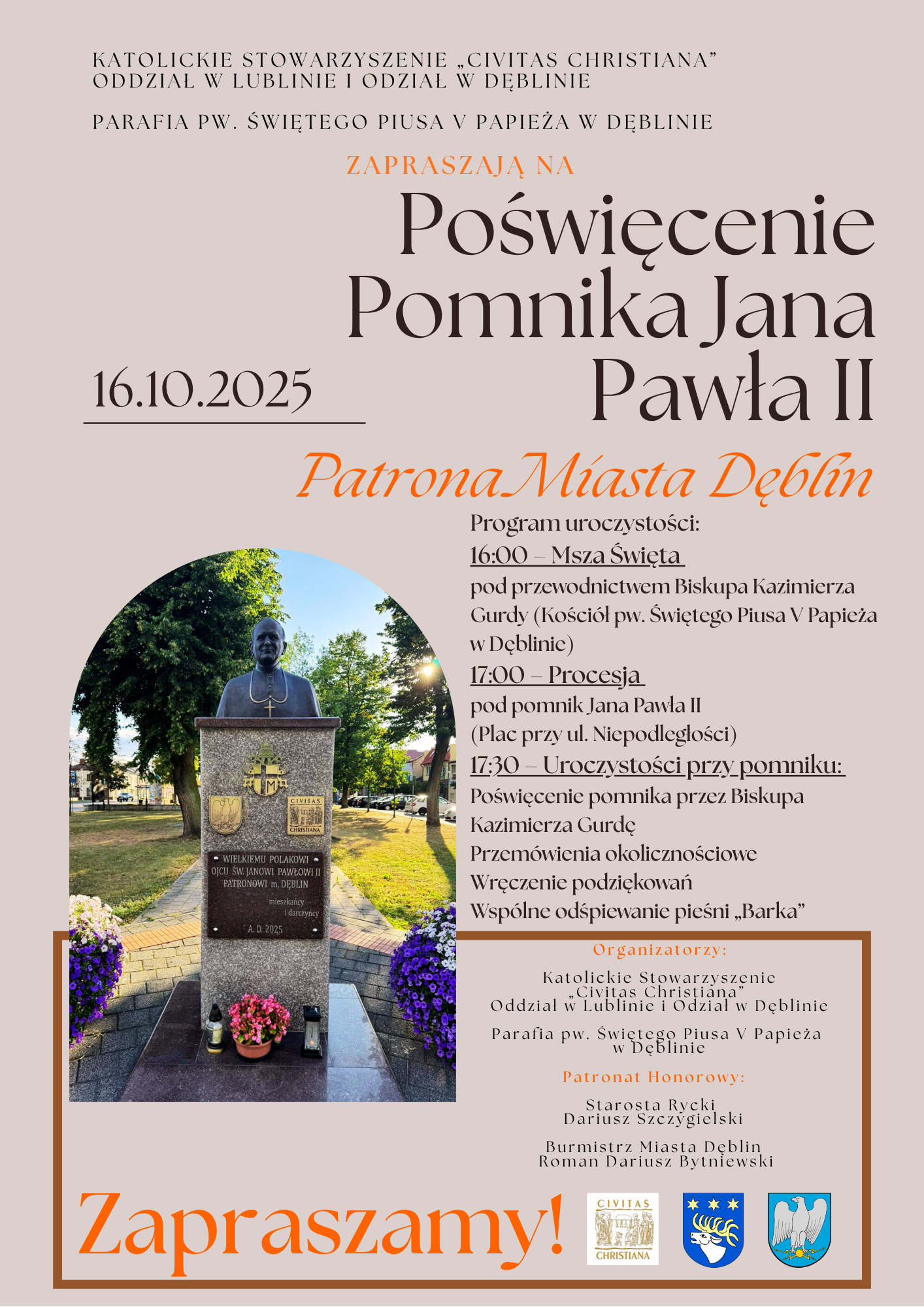 ODSŁONIĘCIE POMNIKA ŚW. JANA PAWŁA II PATRONA MIASTA DĘBLINA