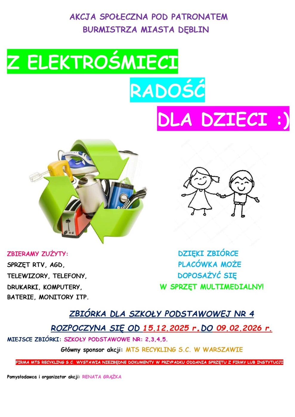 AKCJA ZBIÓRKI ELEKTROODPADÓW „Z ELEKTROŚMIECI – RADOŚĆ DLA DZIECI!”