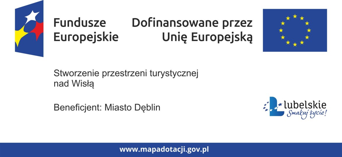 Miasto Dęblin rozpoczęło realizację projektu pn. „Stworzenie przestrzeni turystycznej nad Wisłą”, którego celem jest utworzenie atrakcyjnego, nowoczesnego i przyjaznego miejsca rekreacji oraz wypoczynku dla mieszkańców i odwiedzających nasze miasto.