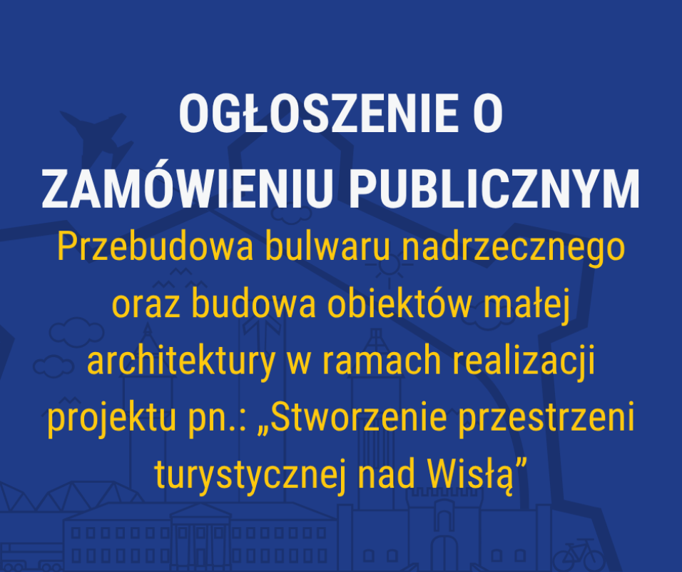 Postępowanie dotyczy zadania pn.: „Przebudowa bulwaru nadrzecznego oraz budowa obiektów małej architektury”, realizowanego w ramach projektu „Stworzenie przestrzeni turystycznej nad Wisłą”.