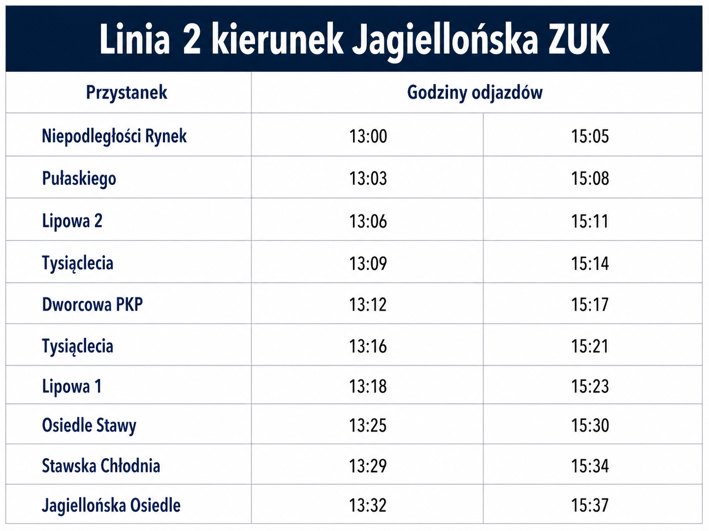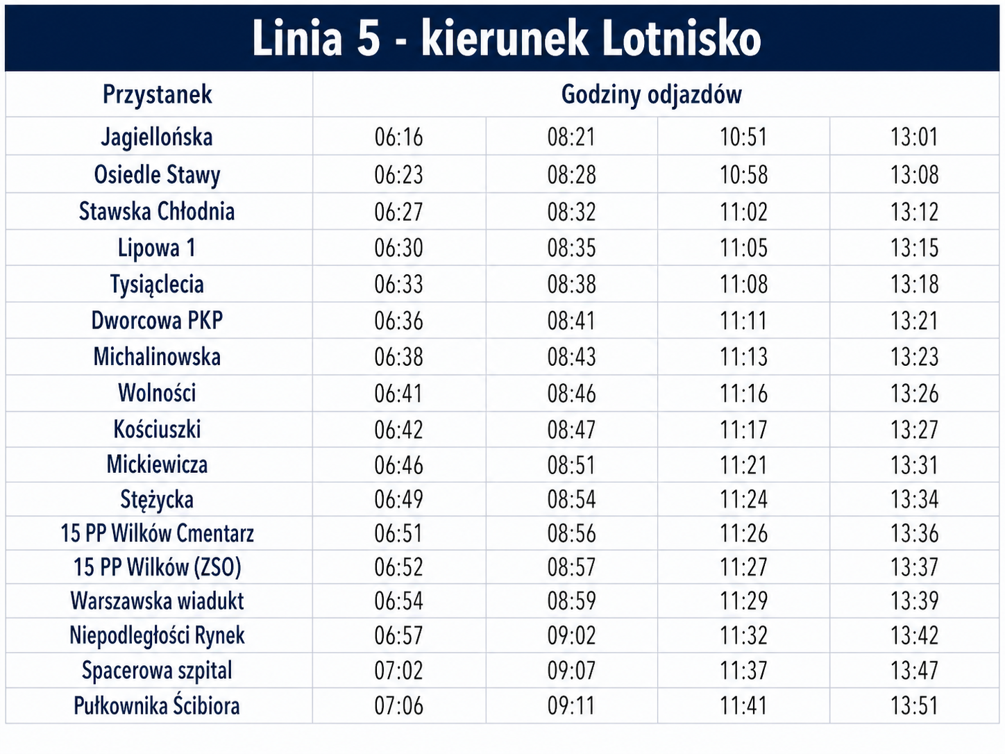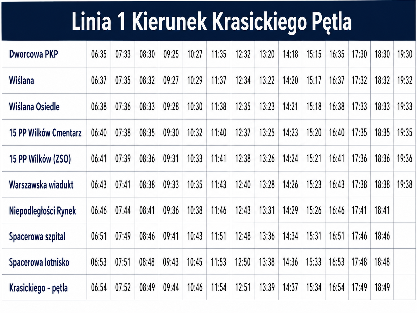 - rozkłady jazdy dla poszczególnych linii autobusowych,