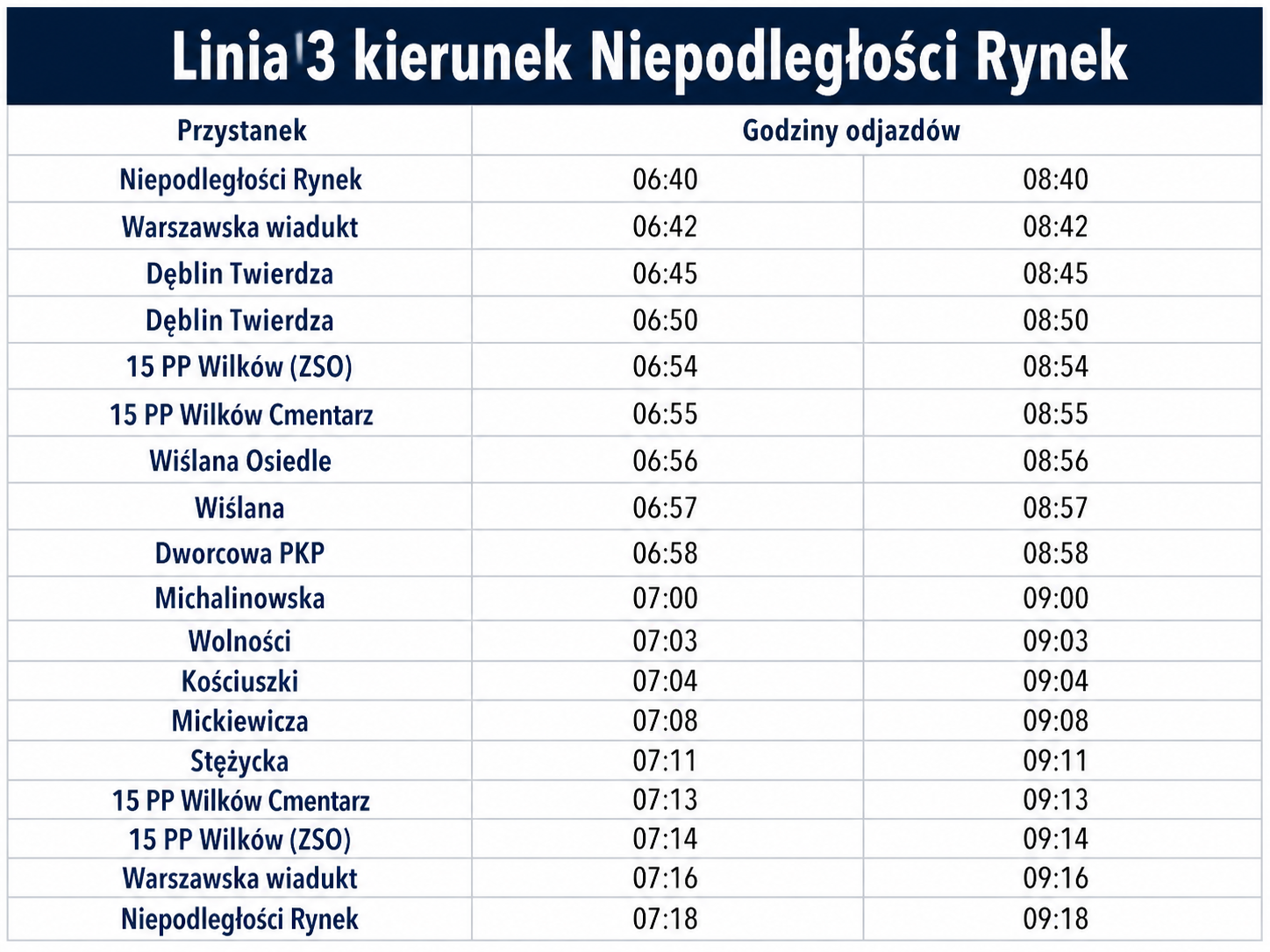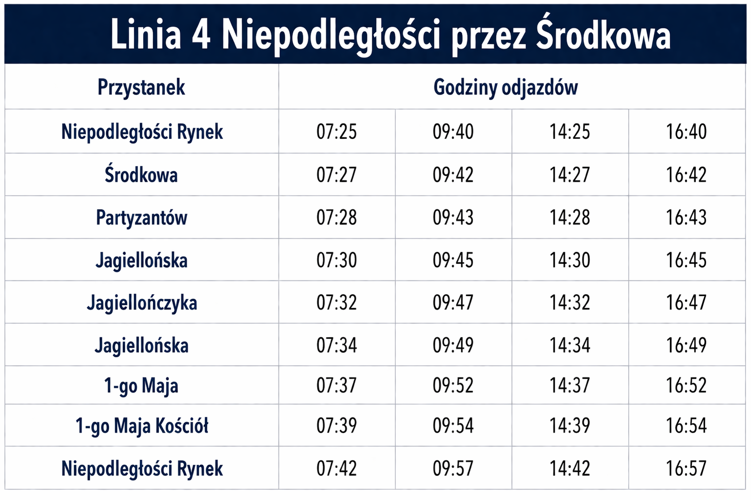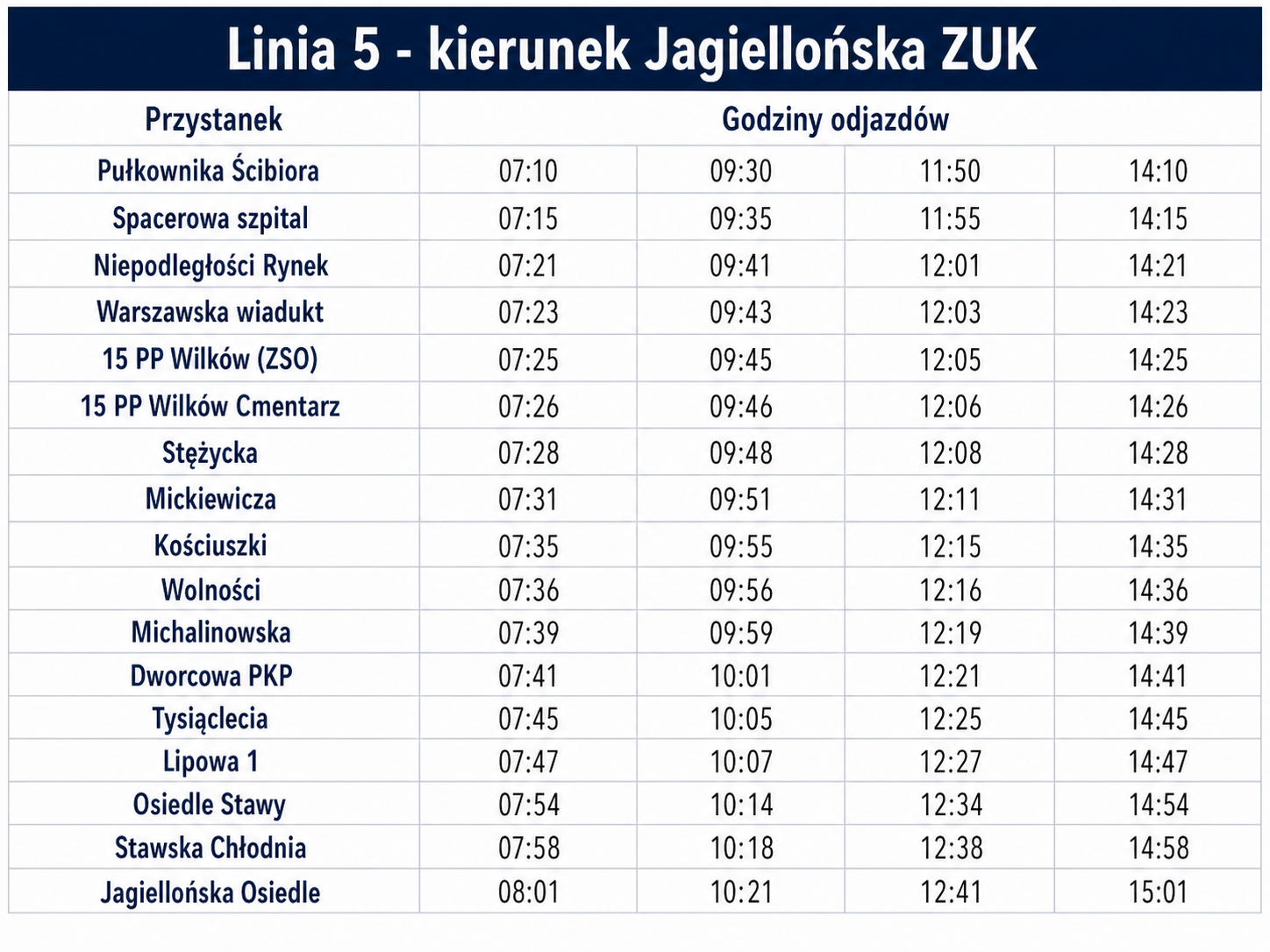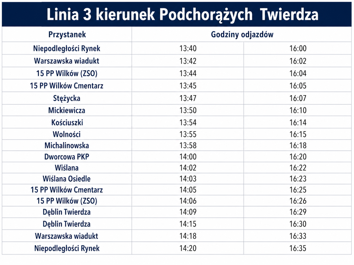 - rozkłady jazdy dla poszczególnych linii autobusowych,